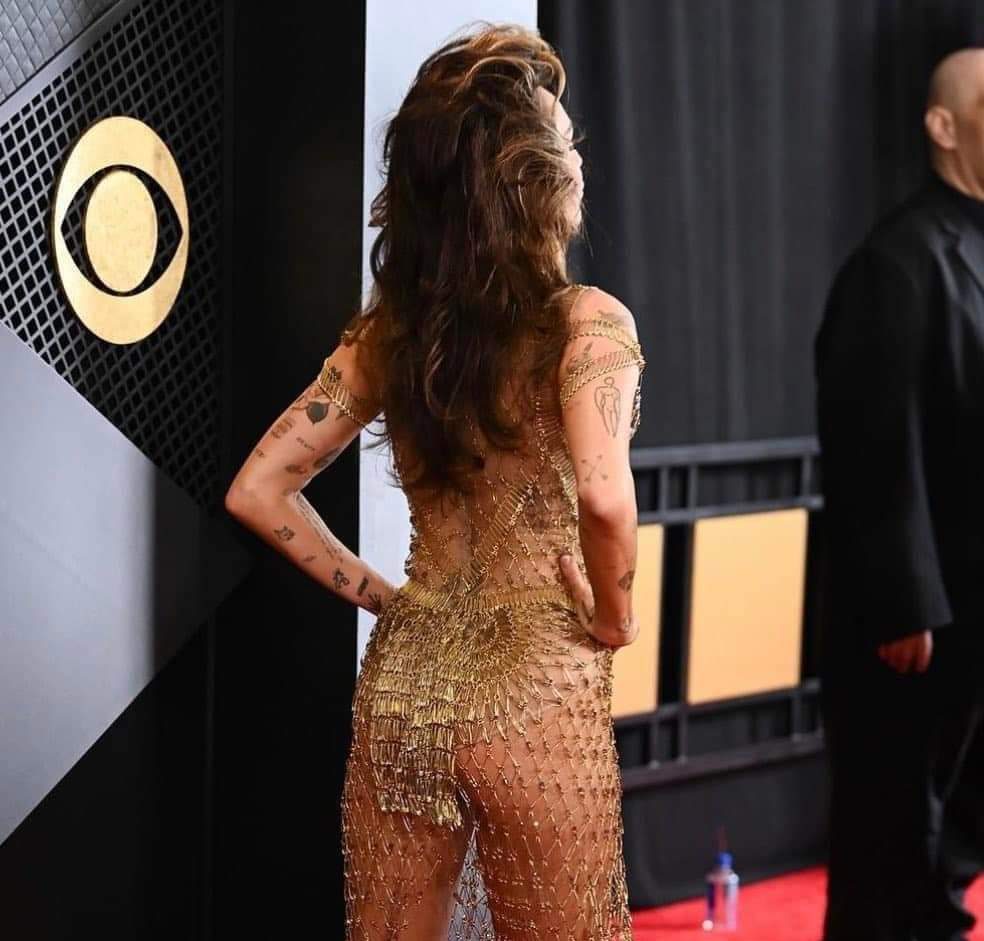 SUTIL EXTRAVAGANCIA. El vestido de la famosa Miley Cyrus se hizo viral y pasó a la historia al requerir 675 horas de trabajo artesanal, 14 mil imperdibles dorados y adornado con cuentas antiguas francesas singularmente seleccionadas. Gracias. Esto explicó la propia cantante en su cuenta de X.